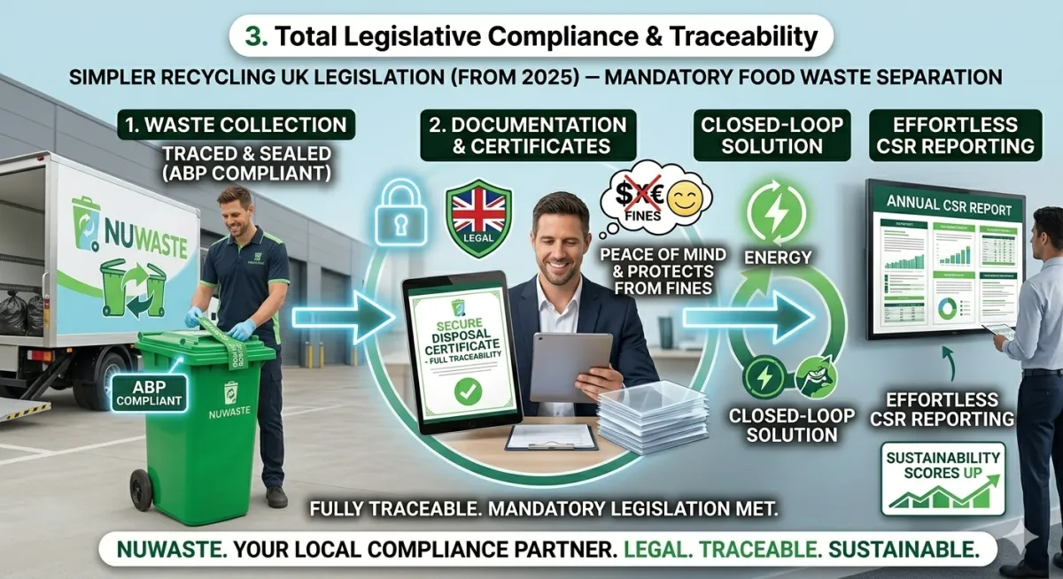 NuWaste provides a fully traceable, "closed-loop" solution, with the appropriate documentation meeting your businesses legal obligations.